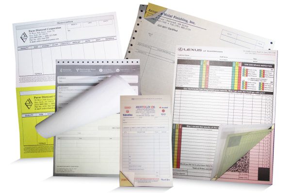 Binding options include edge glued, snap sets, manifold books and continuous forms for dot-matrix/pin-fed printers.Your carbonless forms can also be printed and cut to any size that best fits your needs.